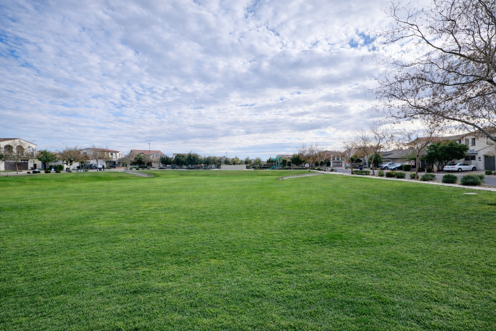 This home features an open floor plan with abundant natural light. Large kitchen with center island and ample cabinet/counter space. All appliances included. Generous sized bedrooms with high ceilings and well-appointed bathrooms. Relax in the maintenance free backyard with an extended covered patio, Synthetic Grass and several fruit trees to enjoy! in front the park.