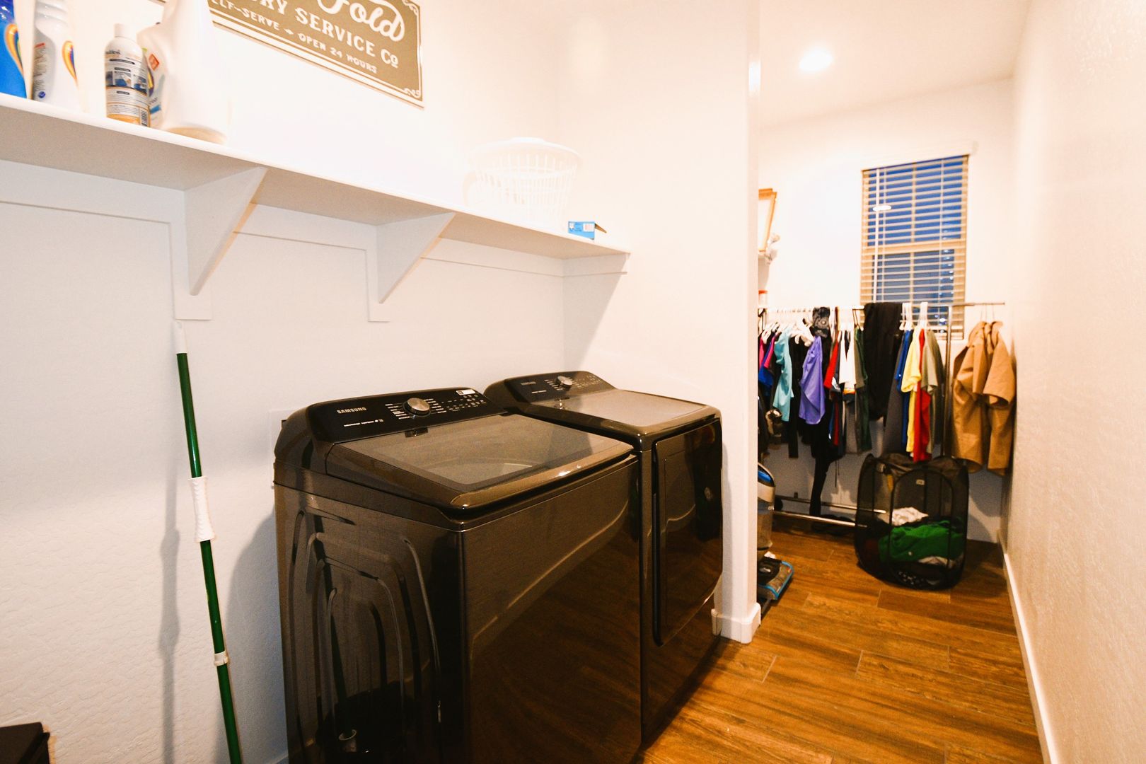 Step into the heart of the home, where a large kitchen awaits with a pantry and abundant cabinets, making meal preparation a delight. Stainless steel appliances add a touch of modern elegance to the kitchen space. The home also includes a spacious laundry room, ensuring that your household chores are handled with ease.