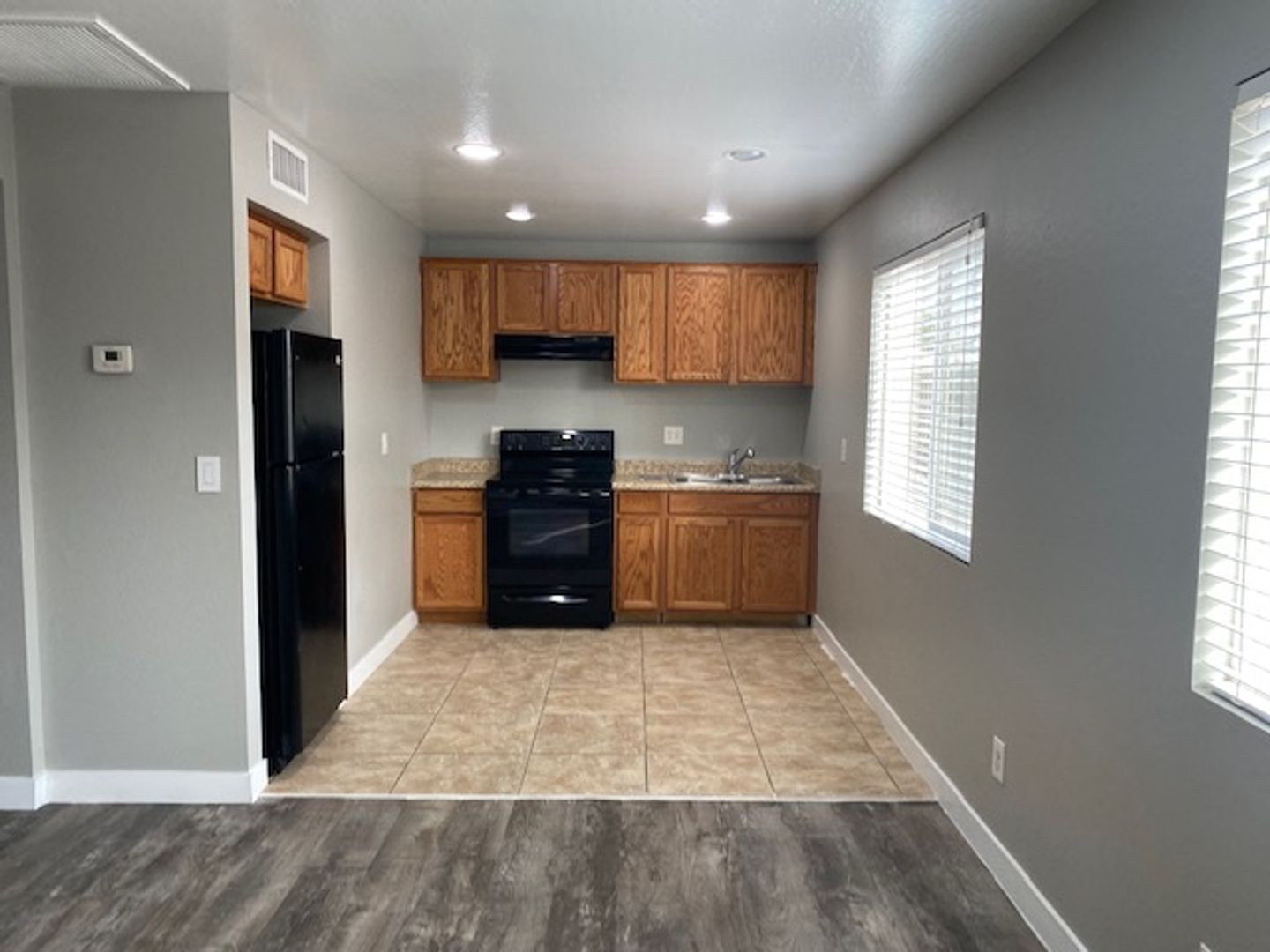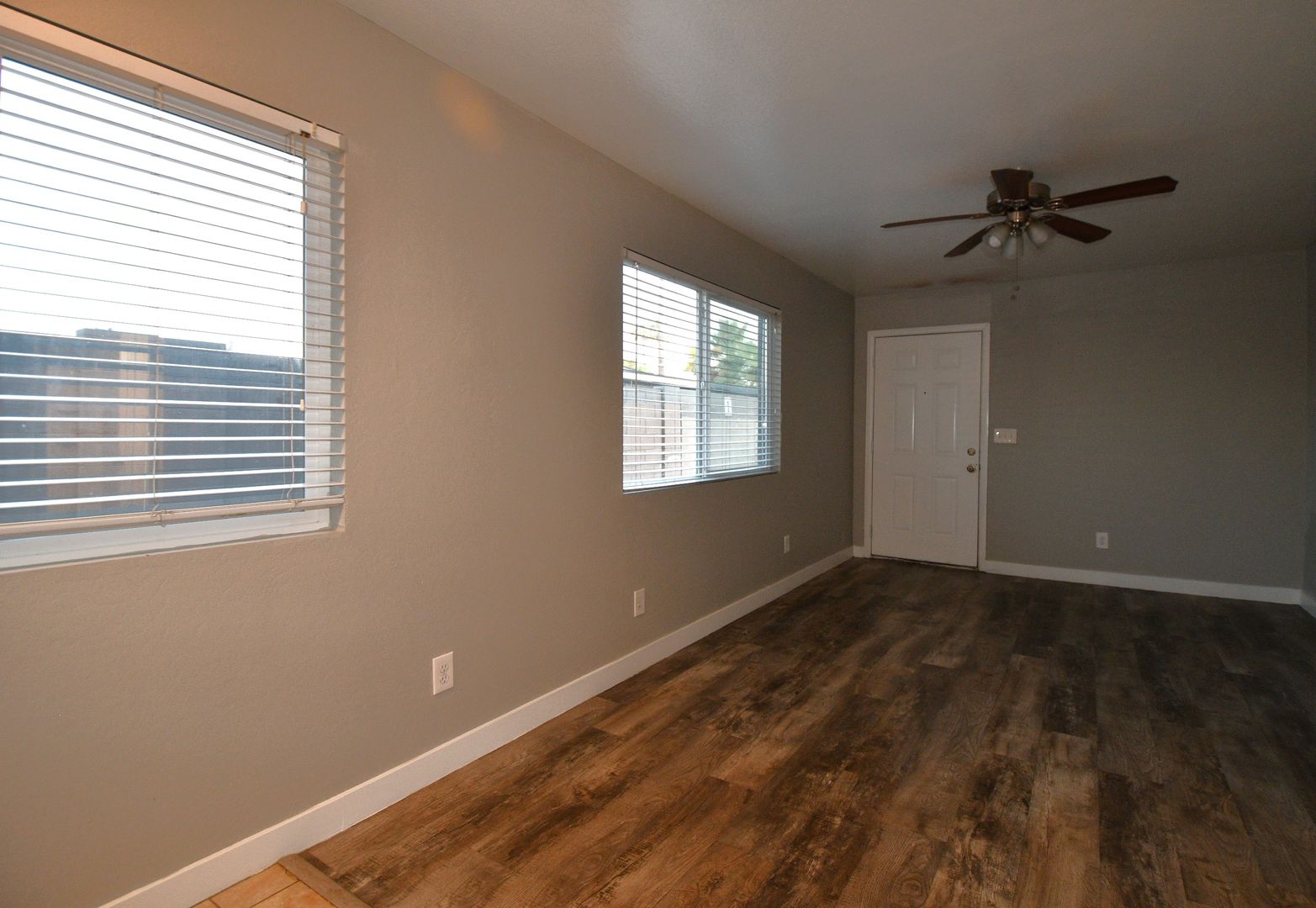 Spacious 2-bedroom, 1-bath apartment. Walk into your large living room. Kitchen is open with lots of cabinets, newer refrigerator and stove. Bedrooms are nice sized with ceiling fans. Vinyl flooring throughout.