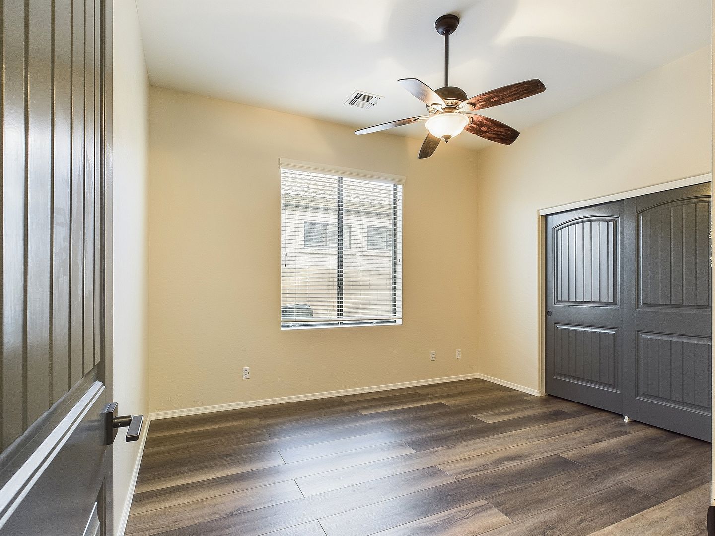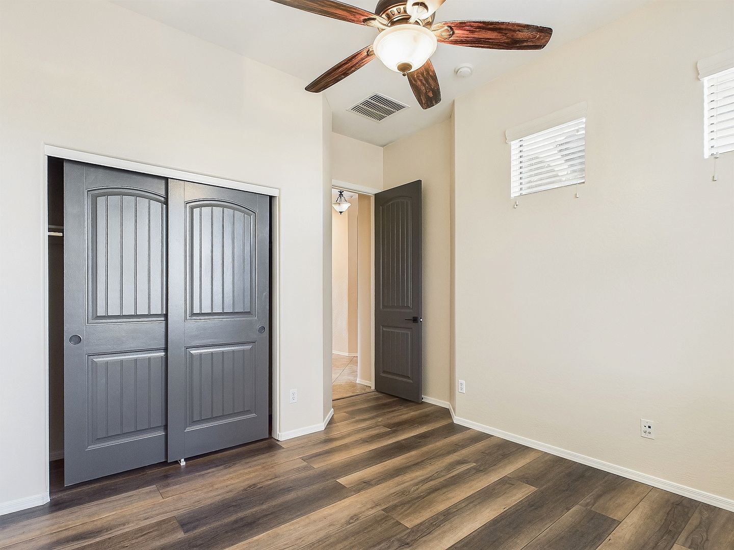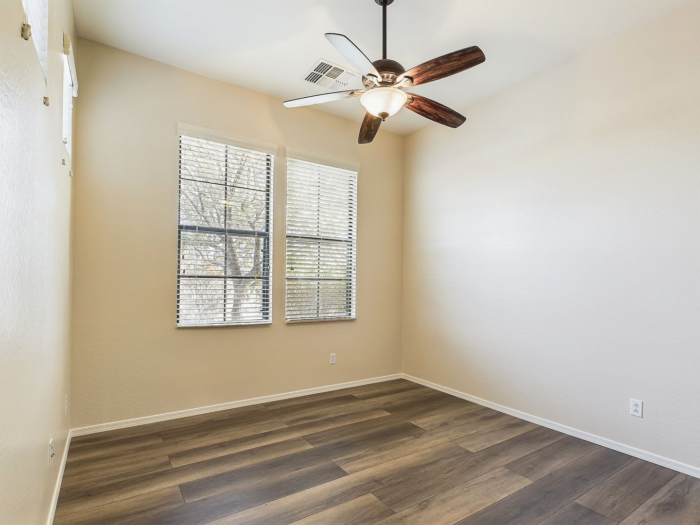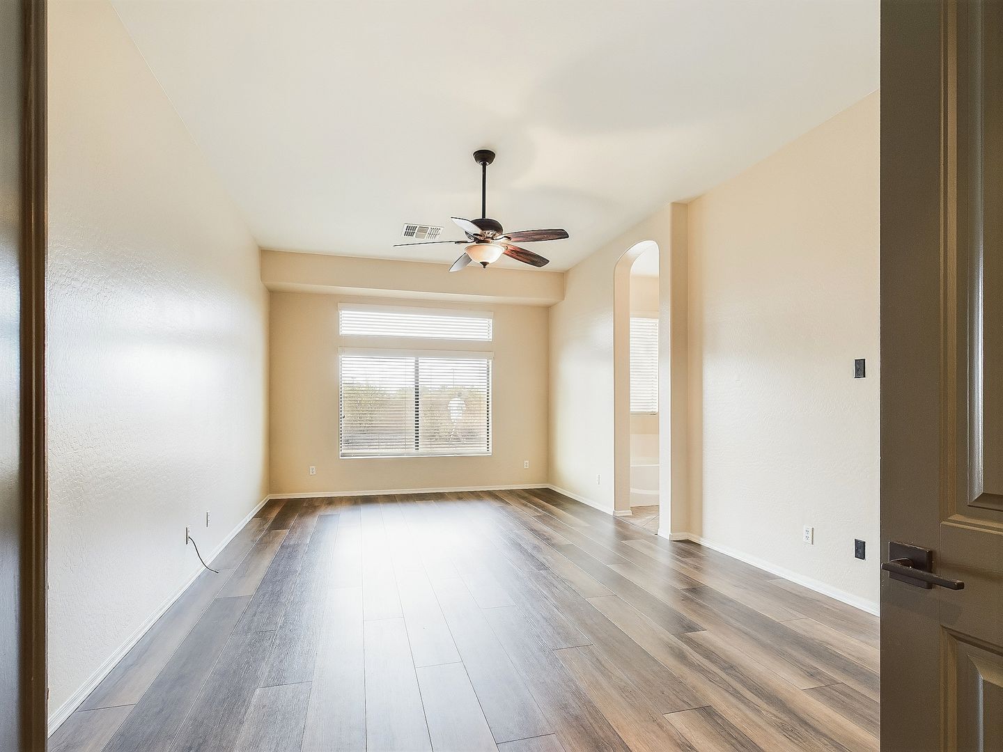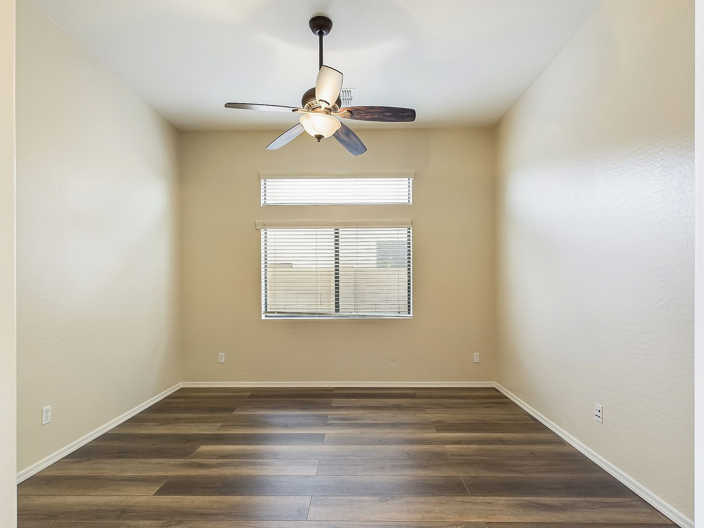Ceiling fans and window coverings for added convenience.