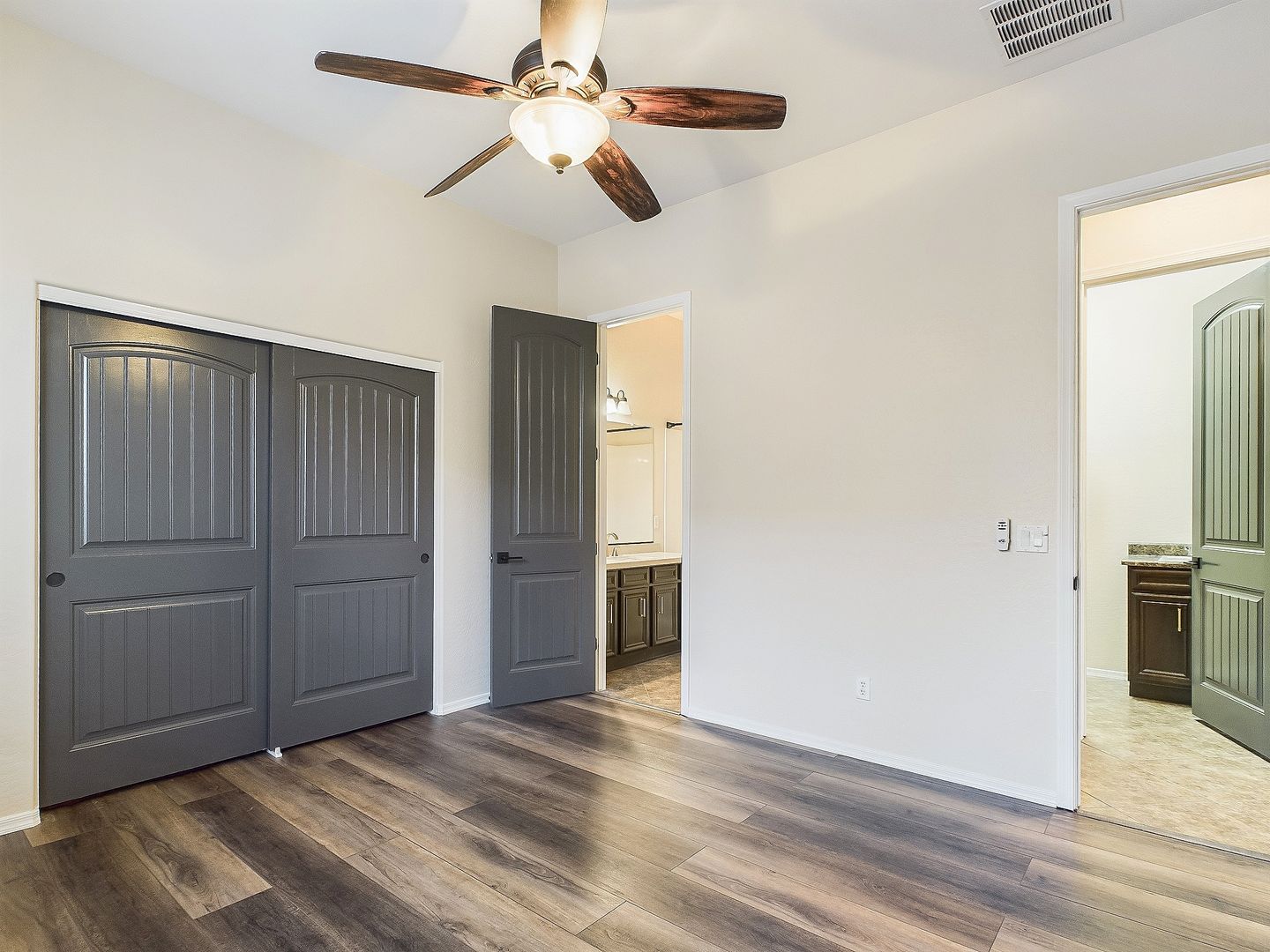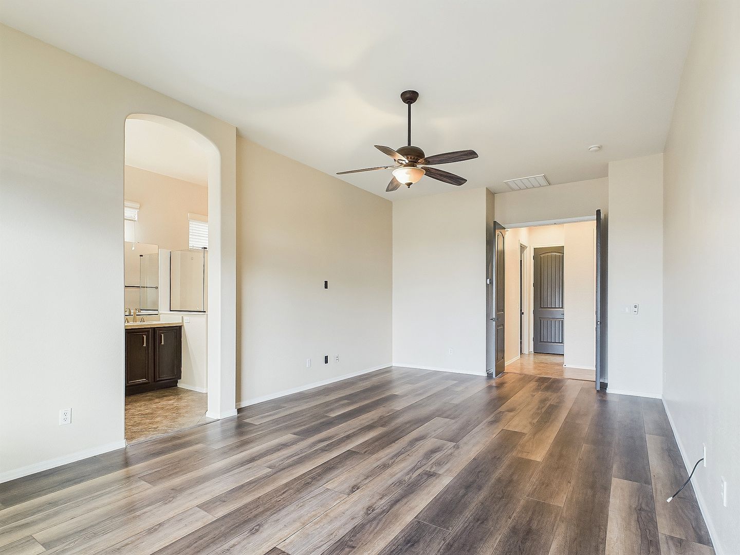 Newly installed vinyl plank flooring throughout.