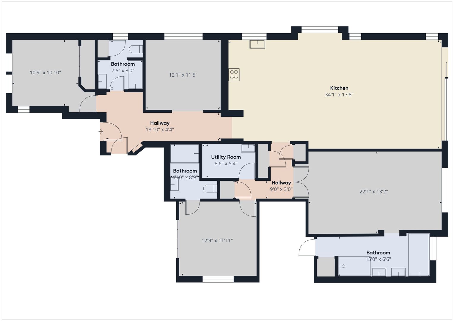 Newly remodeled bathrooms with updated fixtures.
