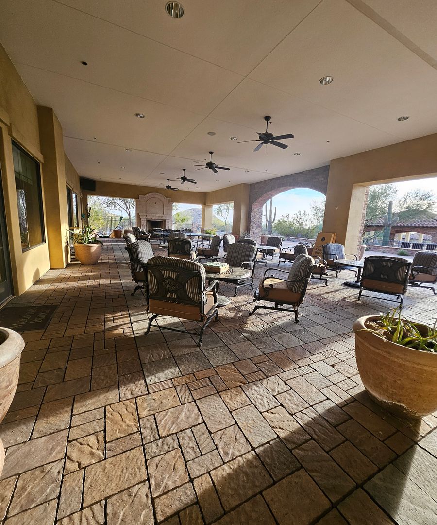 Clubhouse with multi-purpose room and extensive outdoor patio.