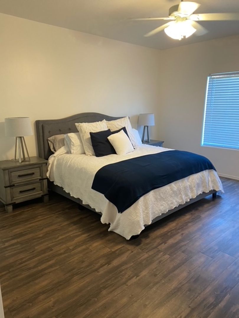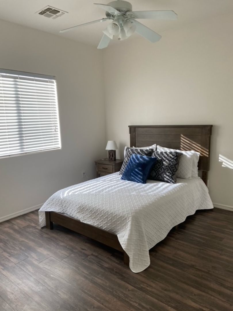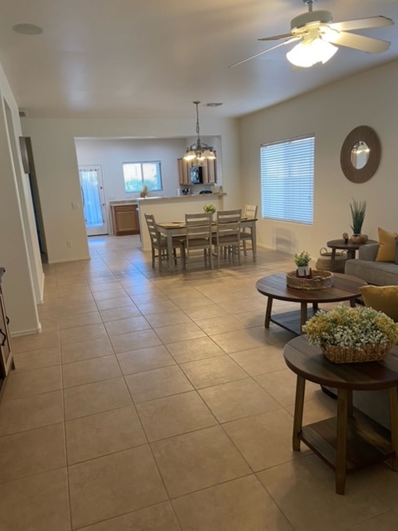 Fully Furnished Short Term Lease - 1780 Sq. Ft. 4 bedroom, 2 bath Bungalow with 2 car garage located in Anthem Merrill Ranch Parkside, Florence, Arizona. Access to all amenities include 43,000 sq. ft. recreation center with heated pool and Splash Park, 18 hole golf course and clubhouse, workout gym with state of the art gym equipment, tennis courts, pickle ball courts, billiards, ping pong and other activities. Main Bedroom Suite has a King size bed, large walk in closet with attached bathroom. Second bedroom is furnished with a Queen size bed and the Third bedroom has a size double bed. The additional flex room has a large walk in closet (Can accommodate another bed) and is set up as an office space. Located a convenient 50 minute drive from Phoenix Sky Harbor Airport and 15 minutes from Walmart and Home Depot. Safeway and Wells Fargo Bank are located within the community.